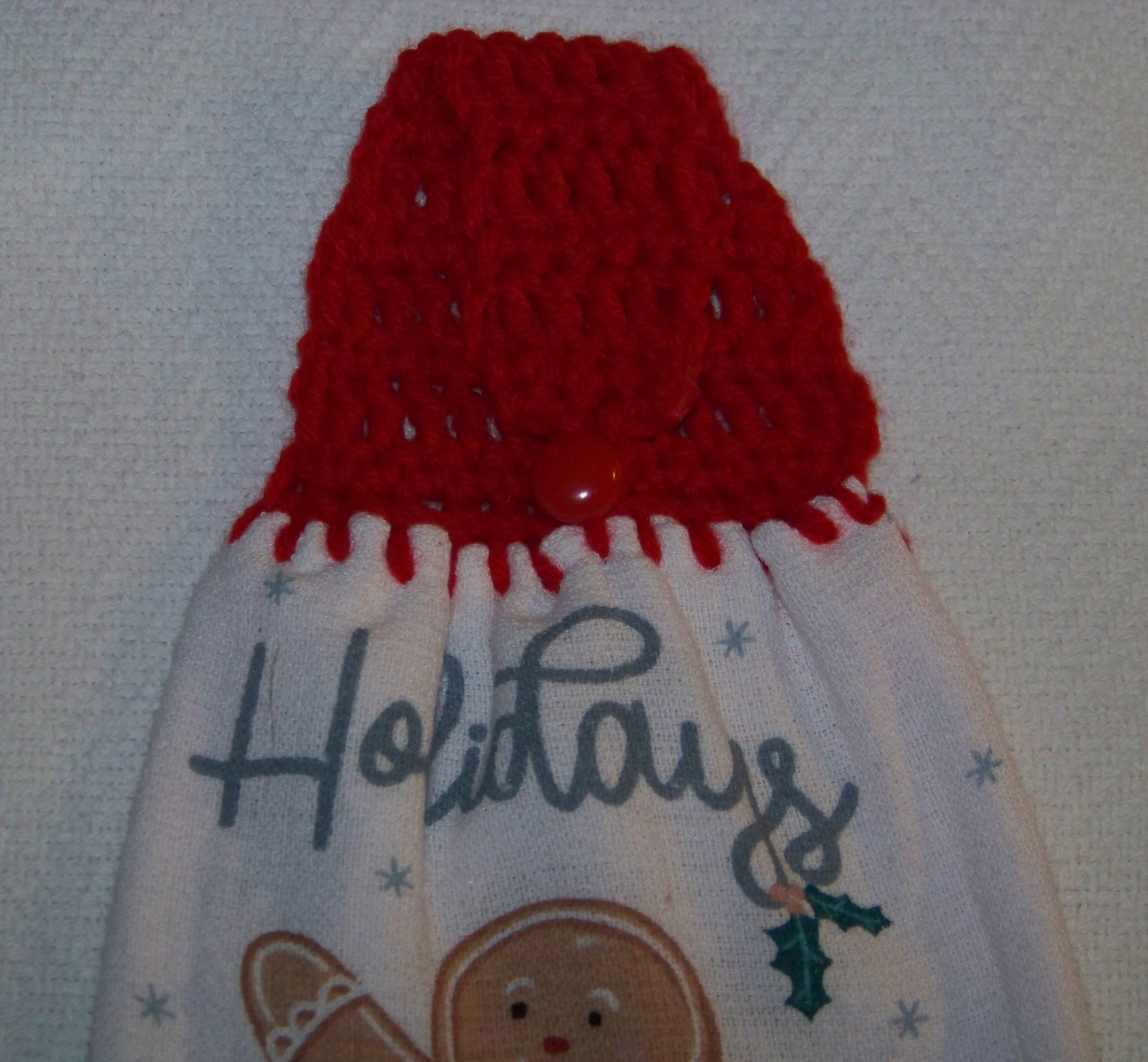 Crocheted top with button to secure to oven door handle